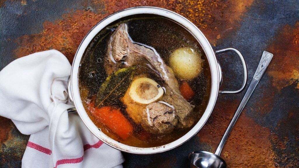 Wapń, magnez i fosfor wypłukane z kości uzupełniają niedobory minerałów, a ciepły, parujący bulion działa jak naturalny inhalator – udrażnia drogi oddechowe i przynosi ulgę podczas przeziębienia.